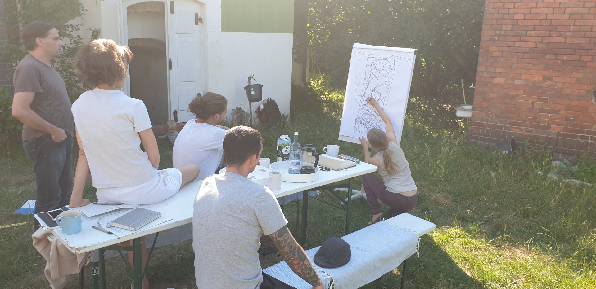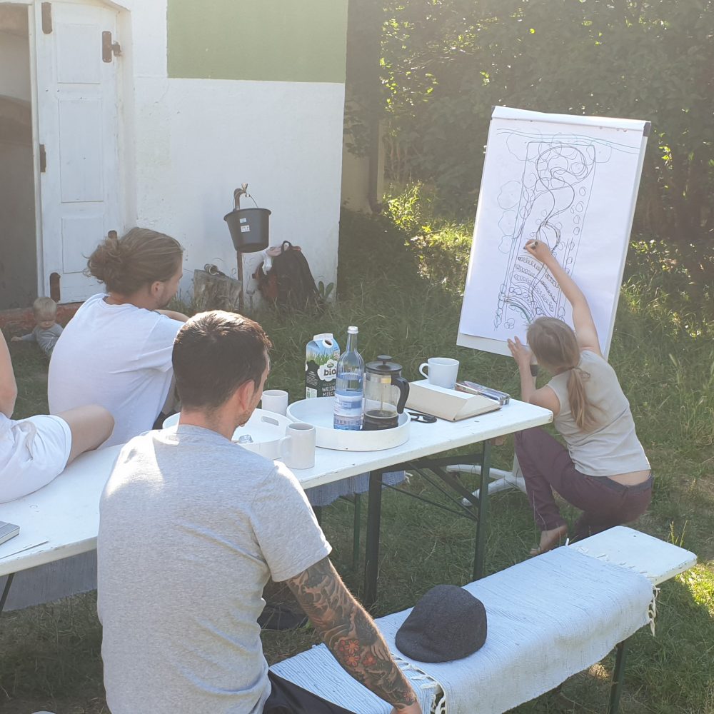 A week after we purchased the little farm, we had breakfast with Mike Bronner, from Dr.Bronners. They are considering coming back to Germany, where their grandfather originally started their soap endeavor. He brought along a young farmer, who shared with the greatest excitement about Ernst Götsch and his regenerative farming approach he calls syntropic farming. 5 Minutes into the conversation, it was clear to us, that this is the way forward for us. A few months later we met Ernst Götsch at a Workshop hosted by Benedict Bösel. Paul and Janine, 2 of his students, were just setting up their own consulting business, and on we went designing and planing our Food Forest.