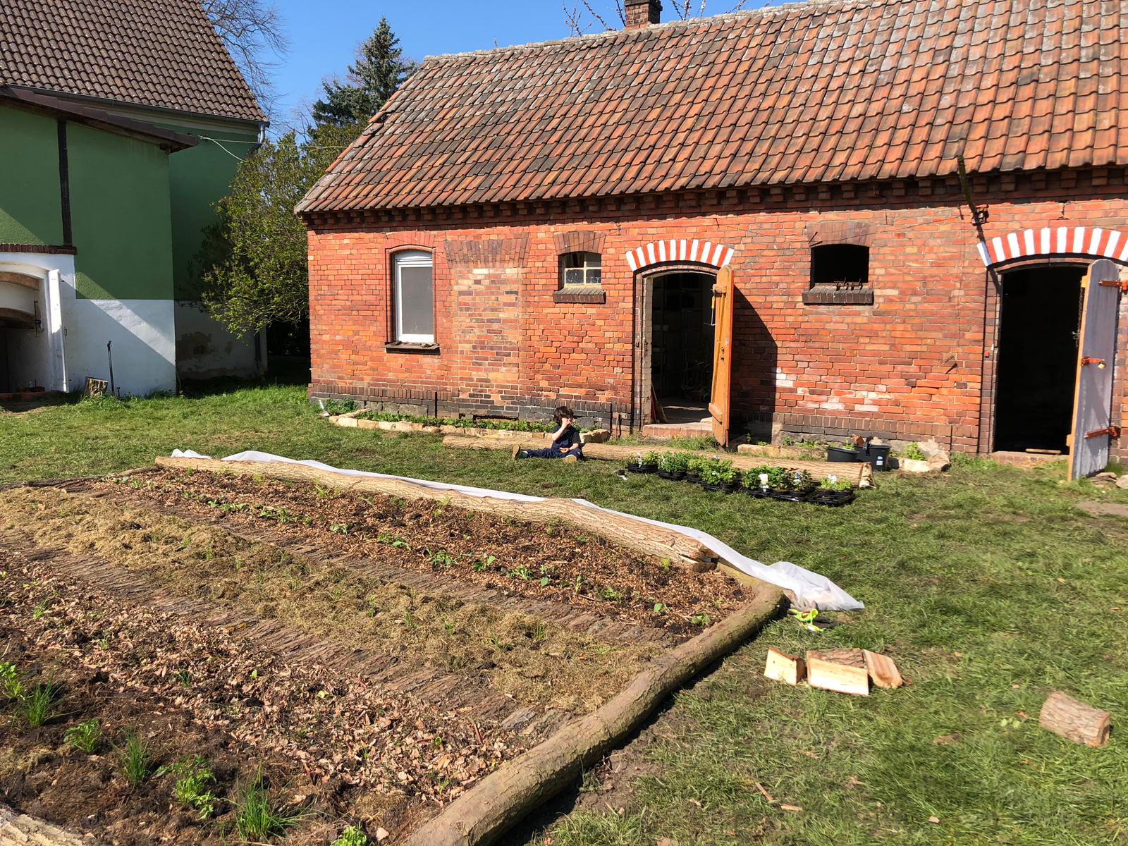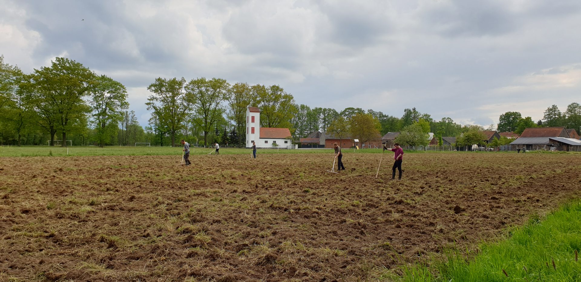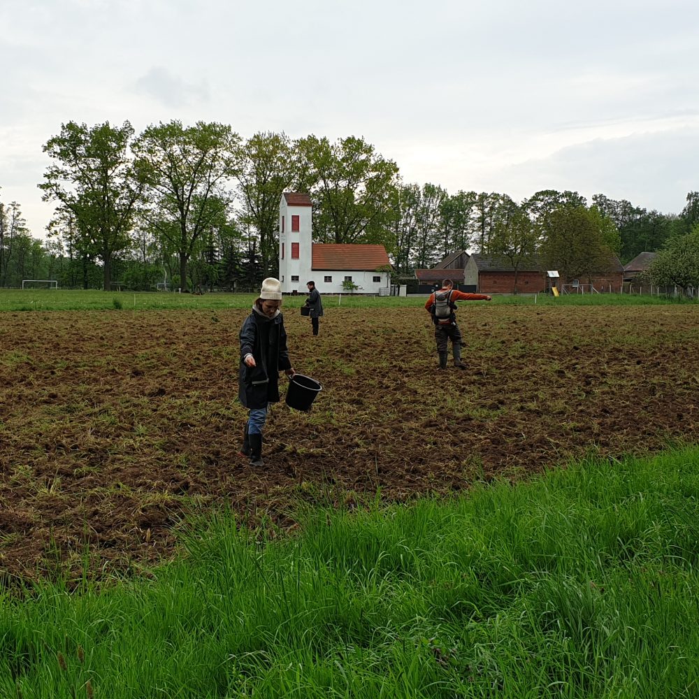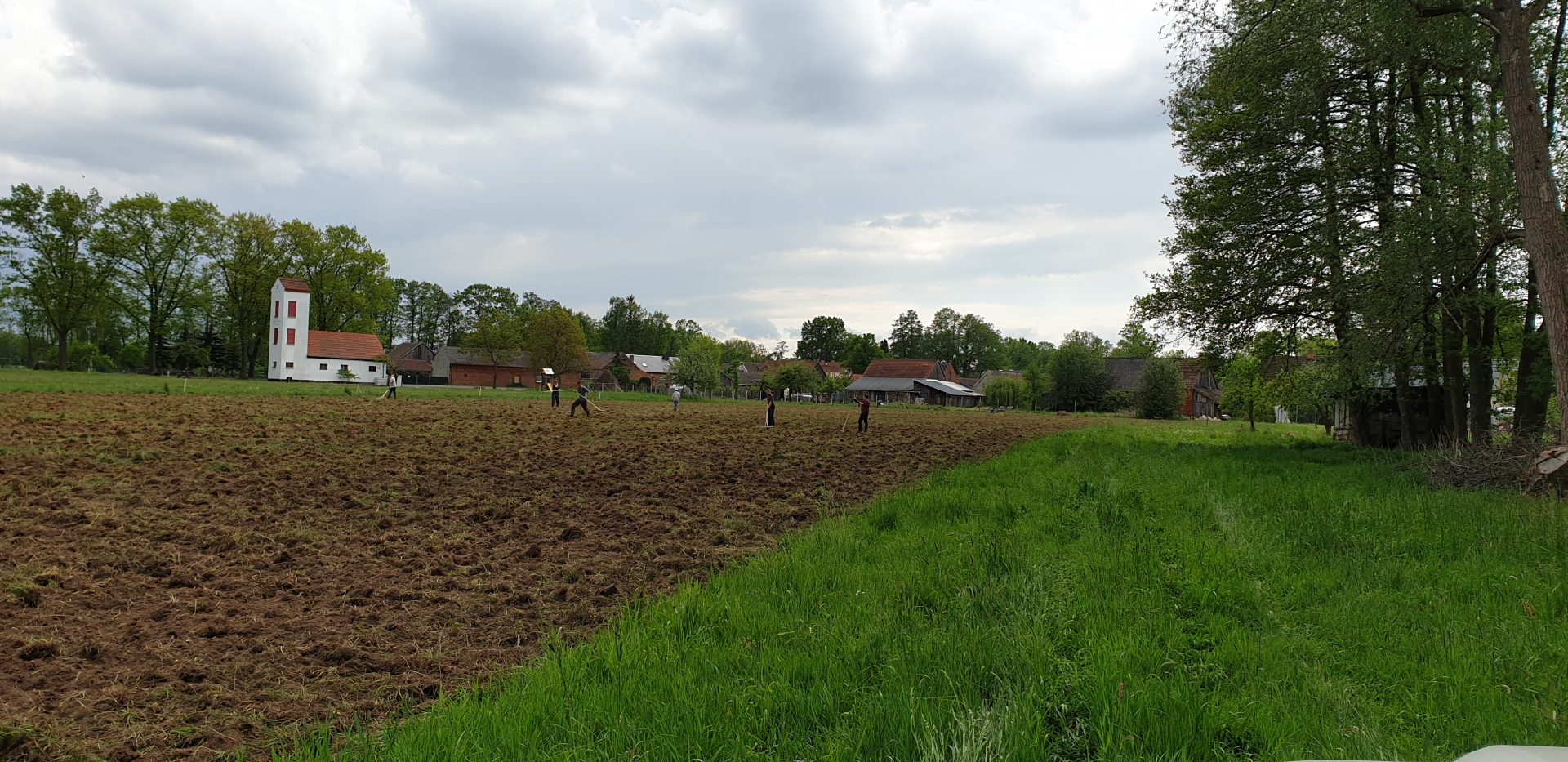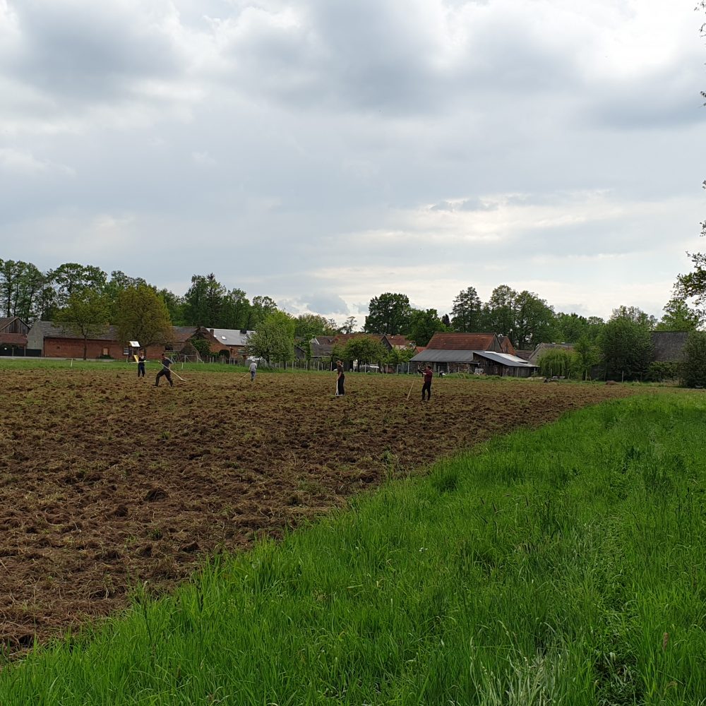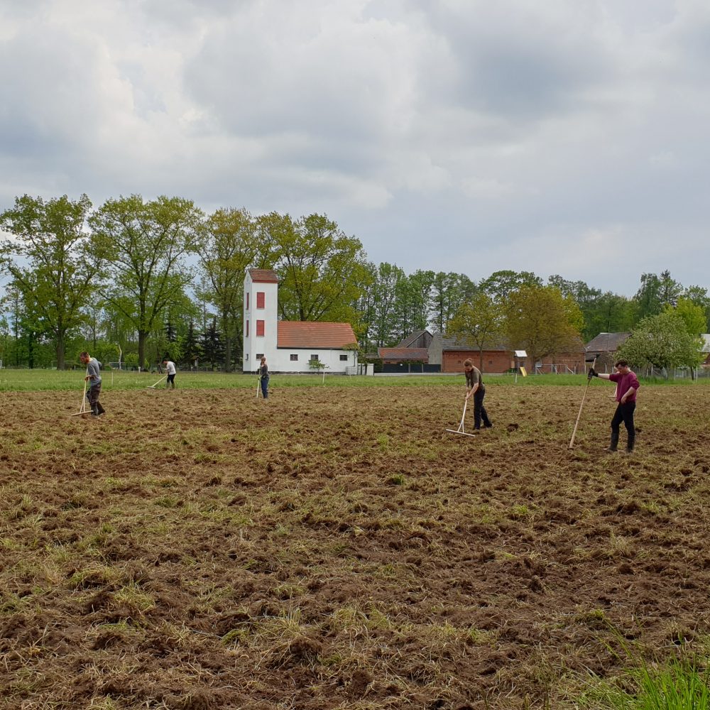 Erste Aussaat von Bodenverbesserter Gründüngung auf dem Feld. Wir haben das Feld einmal gepflügt, da es sehr dicht und hart war und jahrzehntelang nur schnell wachsende Gräser zur Viehfütterung angebaut wurden. Dann haben wir eine Vielzahl von Samen ausgebracht, um den Boden aufzulockern und ihn für die Pflanzung des Food Forests im Herbst vorzubereiten. Wir haben auch erste Steine bewegt, um unseren ersten kleinen Kräutergarten und ein Testfeld für einen kleinen Gemüsegarten anzulegen.