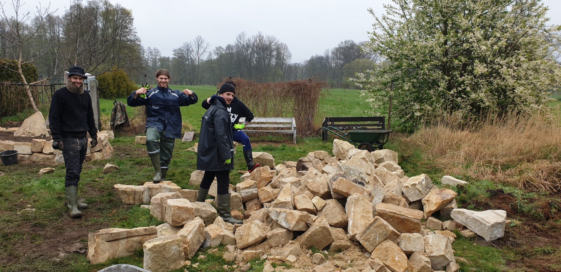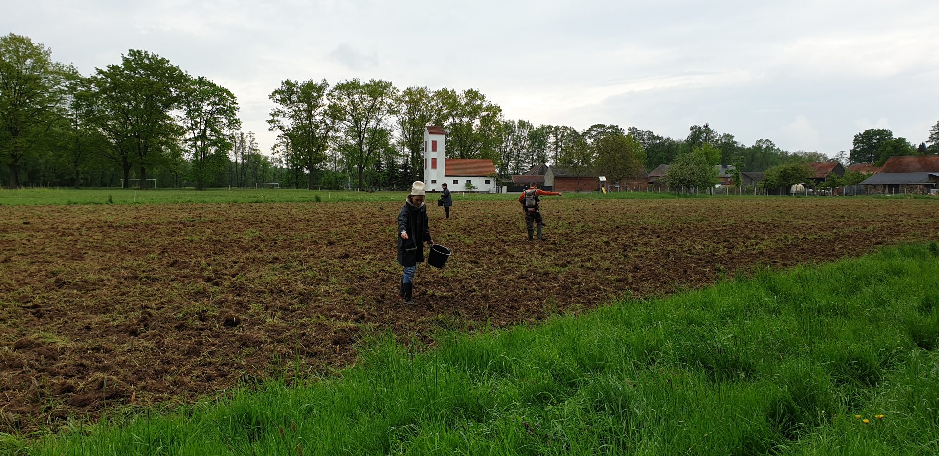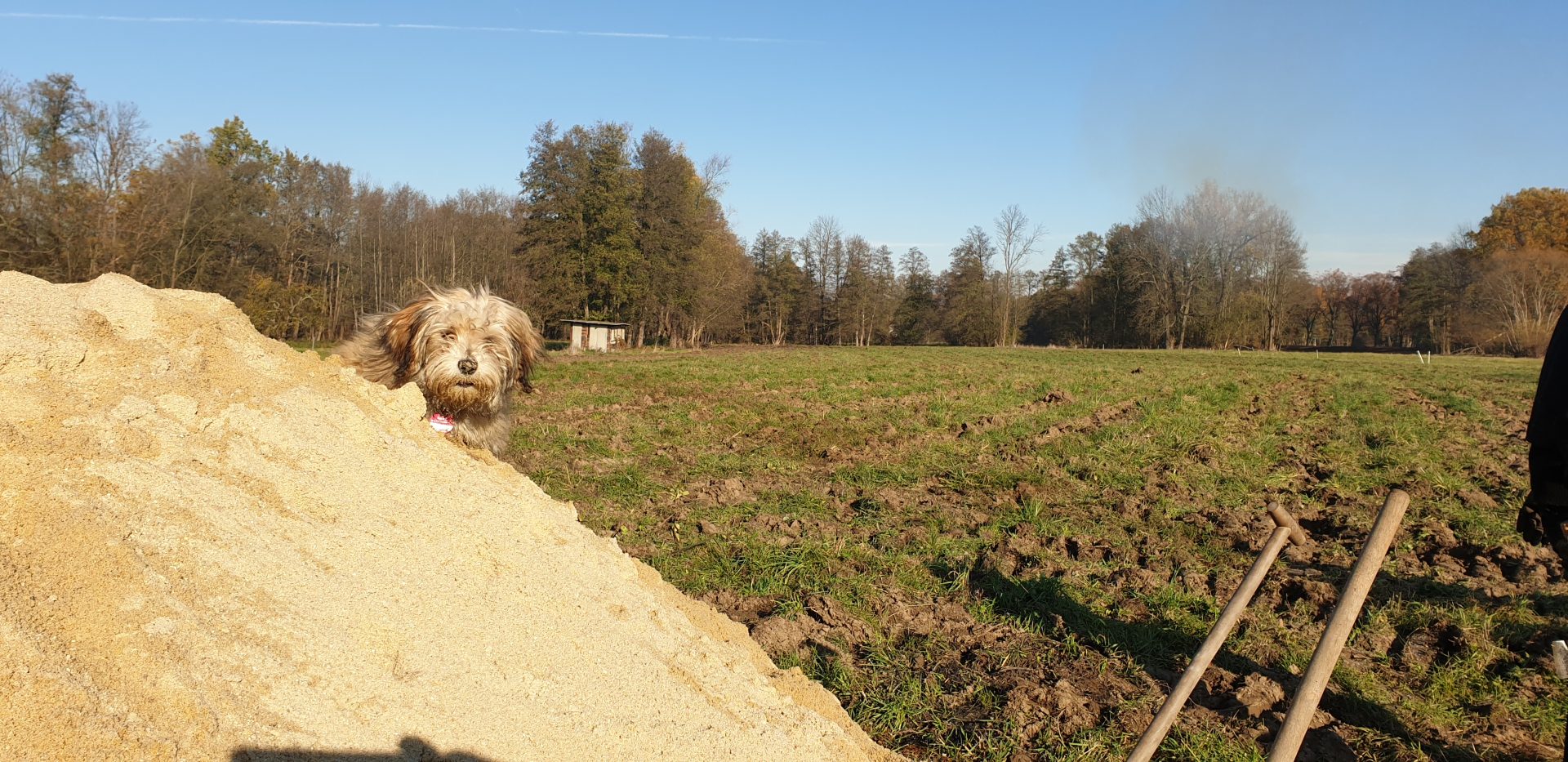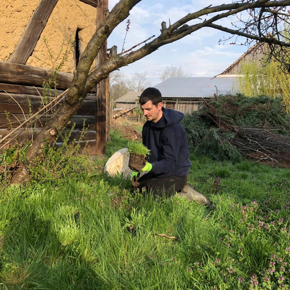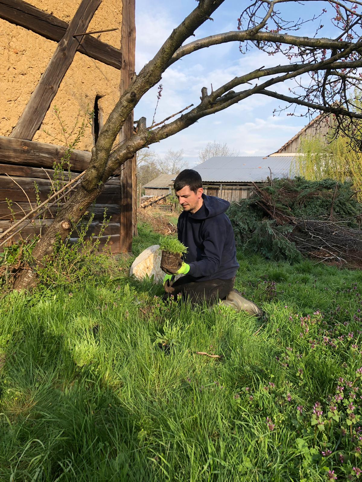 Erste Aussaat von Bodenverbesserter Gründüngung auf dem Feld. Wir haben das Feld einmal gepflügt, da es sehr dicht und hart war und jahrzehntelang nur schnell wachsende Gräser zur Viehfütterung angebaut wurden. Dann haben wir eine Vielzahl von Samen ausgebracht, um den Boden aufzulockern und ihn für die Pflanzung des Food Forests im Herbst vorzubereiten. Wir haben auch erste Steine bewegt, um unseren ersten kleinen Kräutergarten und ein Testfeld für einen kleinen Gemüsegarten anzulegen.