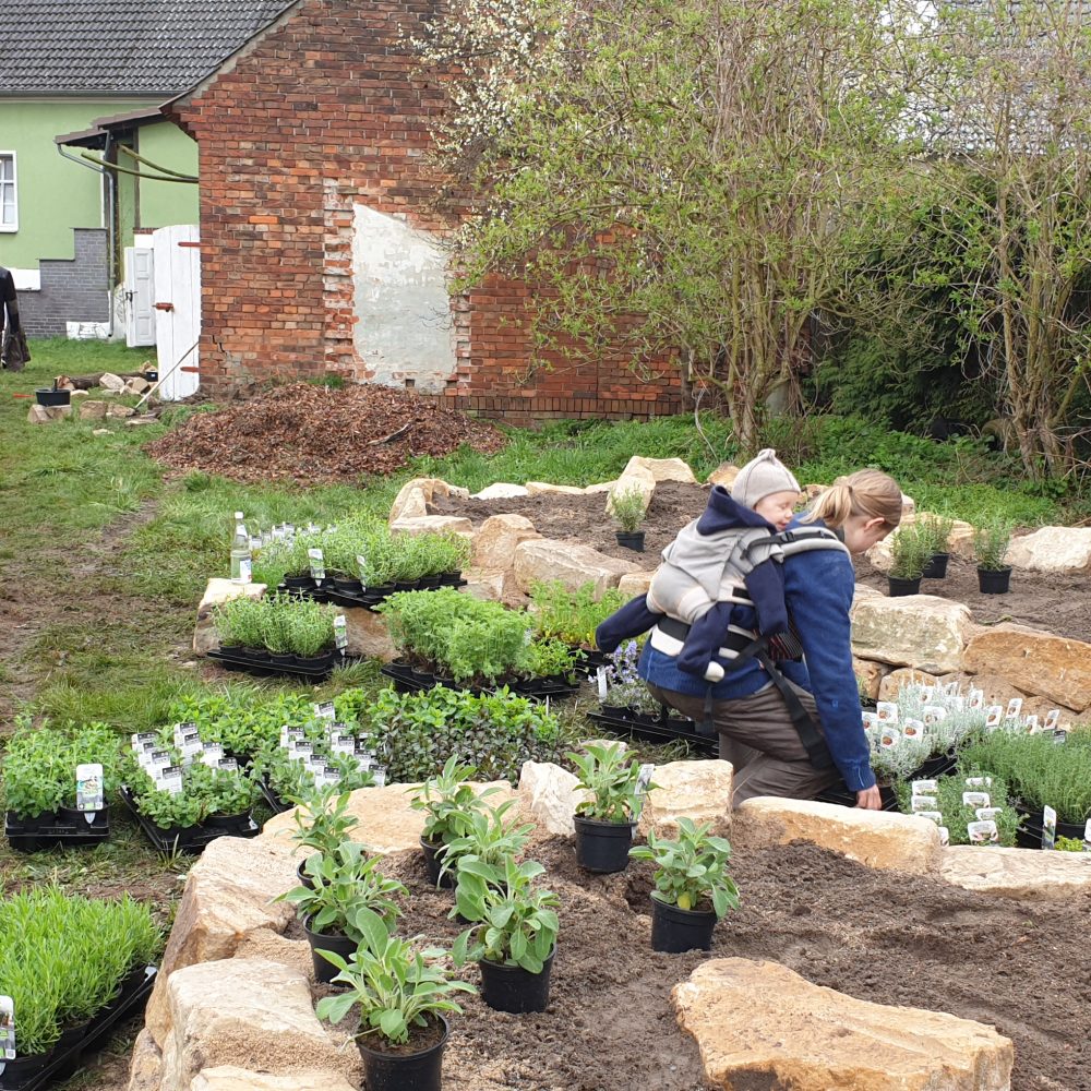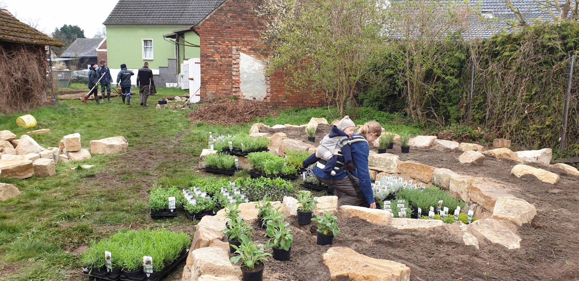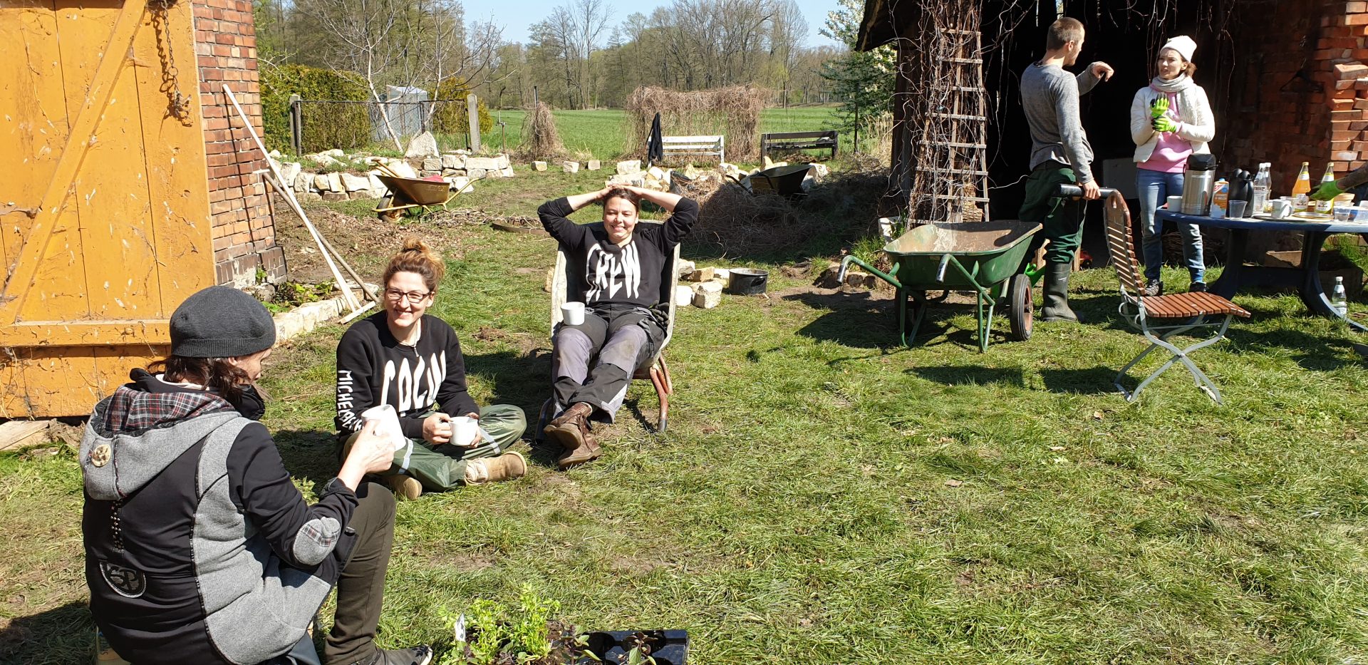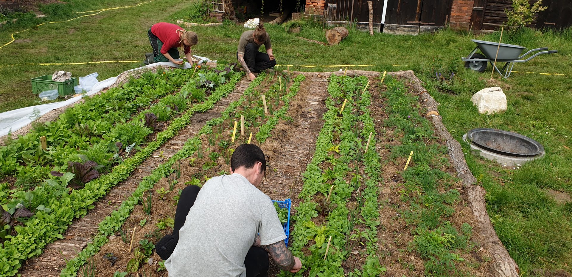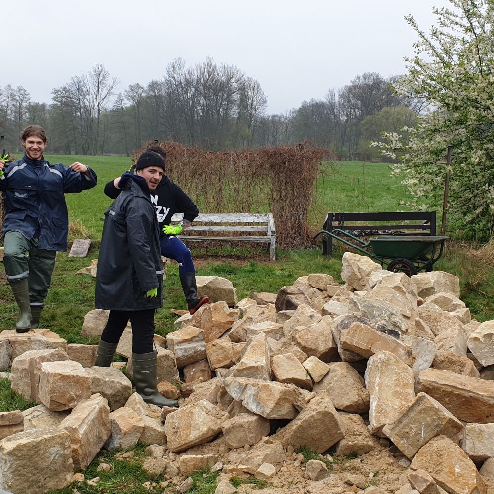 Erste Aussaat von Bodenverbesserter Gründüngung auf dem Feld. Wir haben das Feld einmal gepflügt, da es sehr dicht und hart war und jahrzehntelang nur schnell wachsende Gräser zur Viehfütterung angebaut wurden. Dann haben wir eine Vielzahl von Samen ausgebracht, um den Boden aufzulockern und ihn für die Pflanzung des Food Forests im Herbst vorzubereiten. Wir haben auch erste Steine bewegt, um unseren ersten kleinen Kräutergarten und ein Testfeld für einen kleinen Gemüsegarten anzulegen.