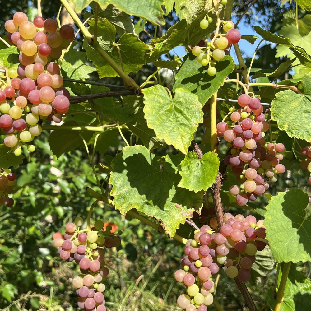 • Entblättern: Kurz vor der Reife kannst du einige Blätter, die die Trauben direkt beschatten, entfernen.