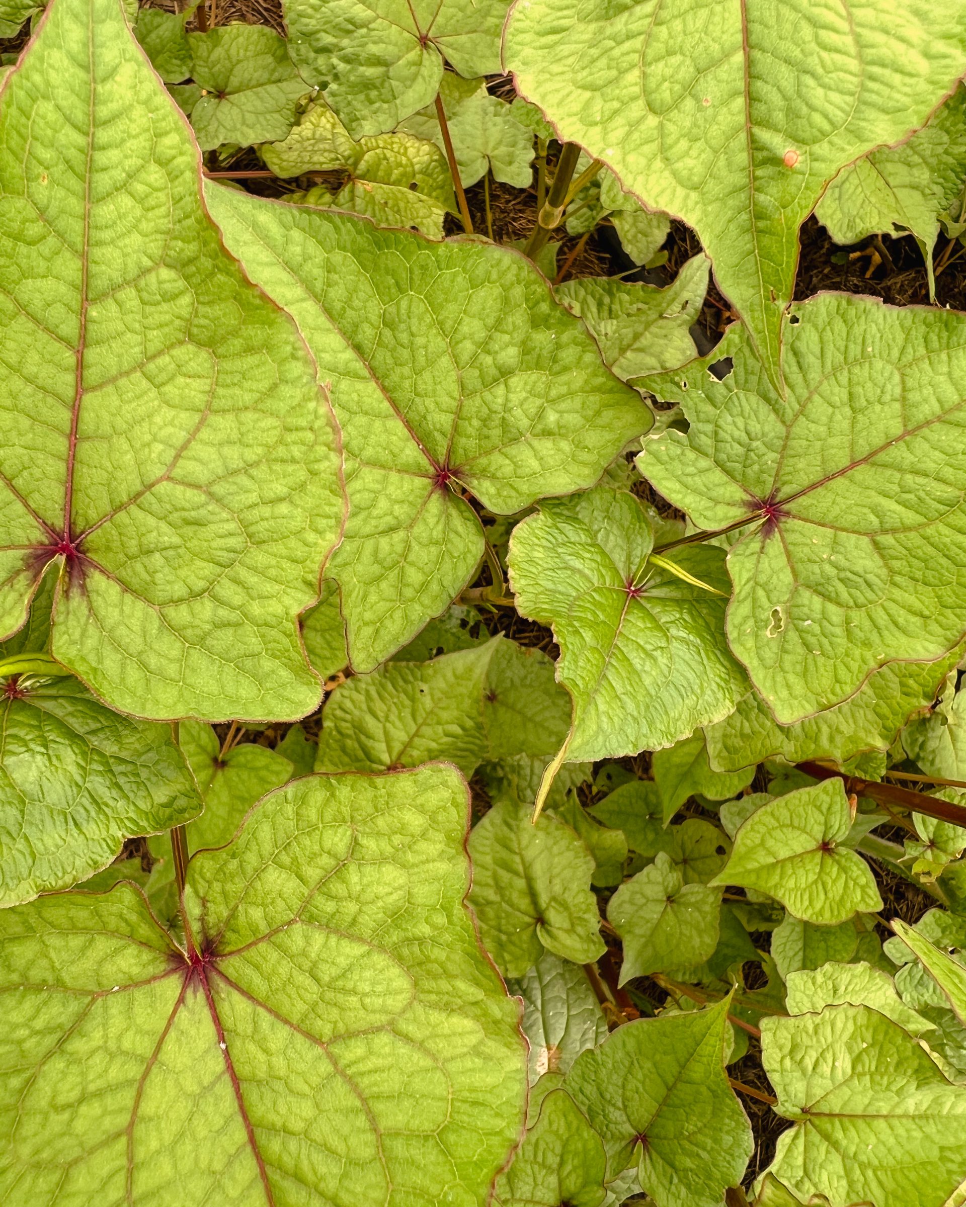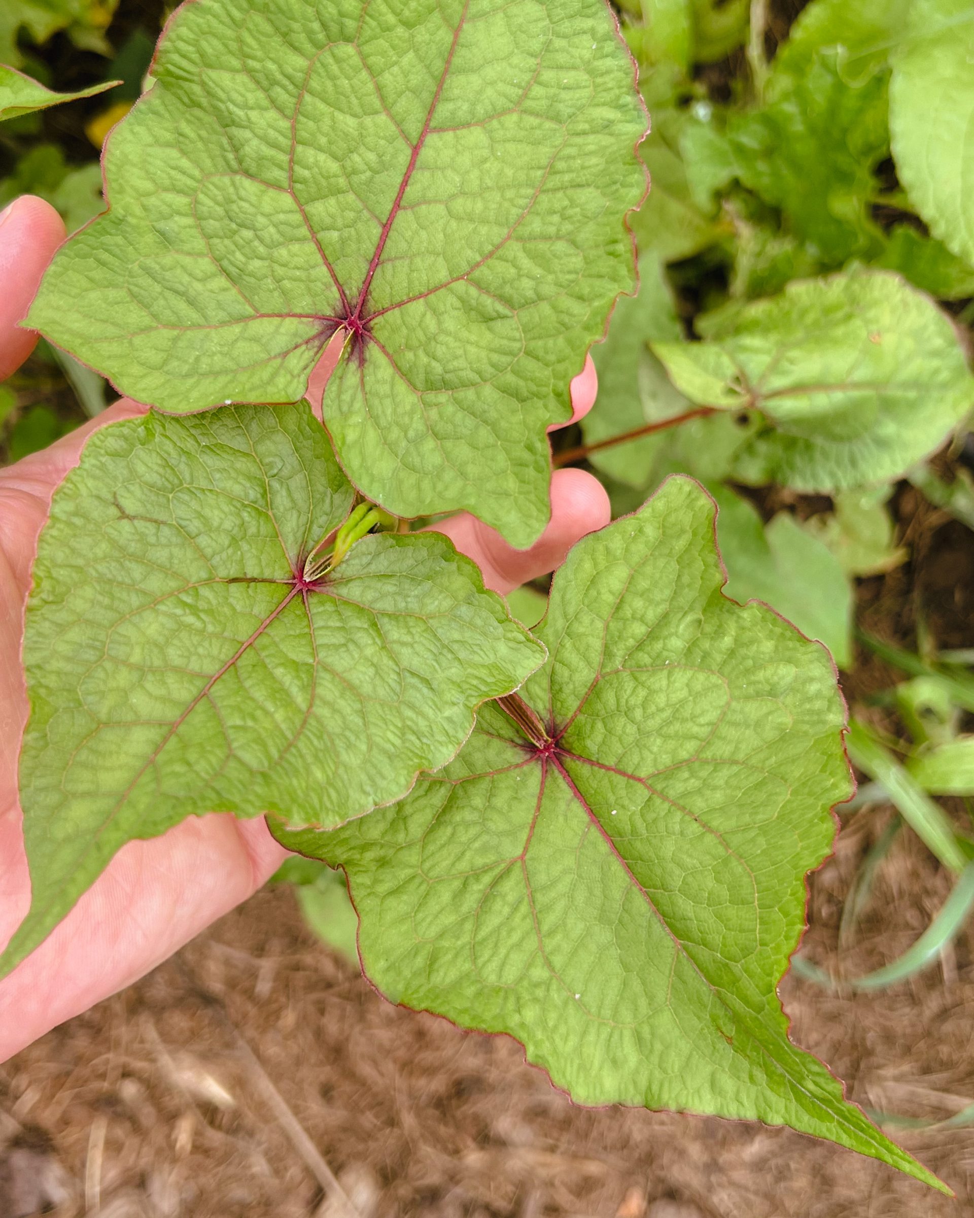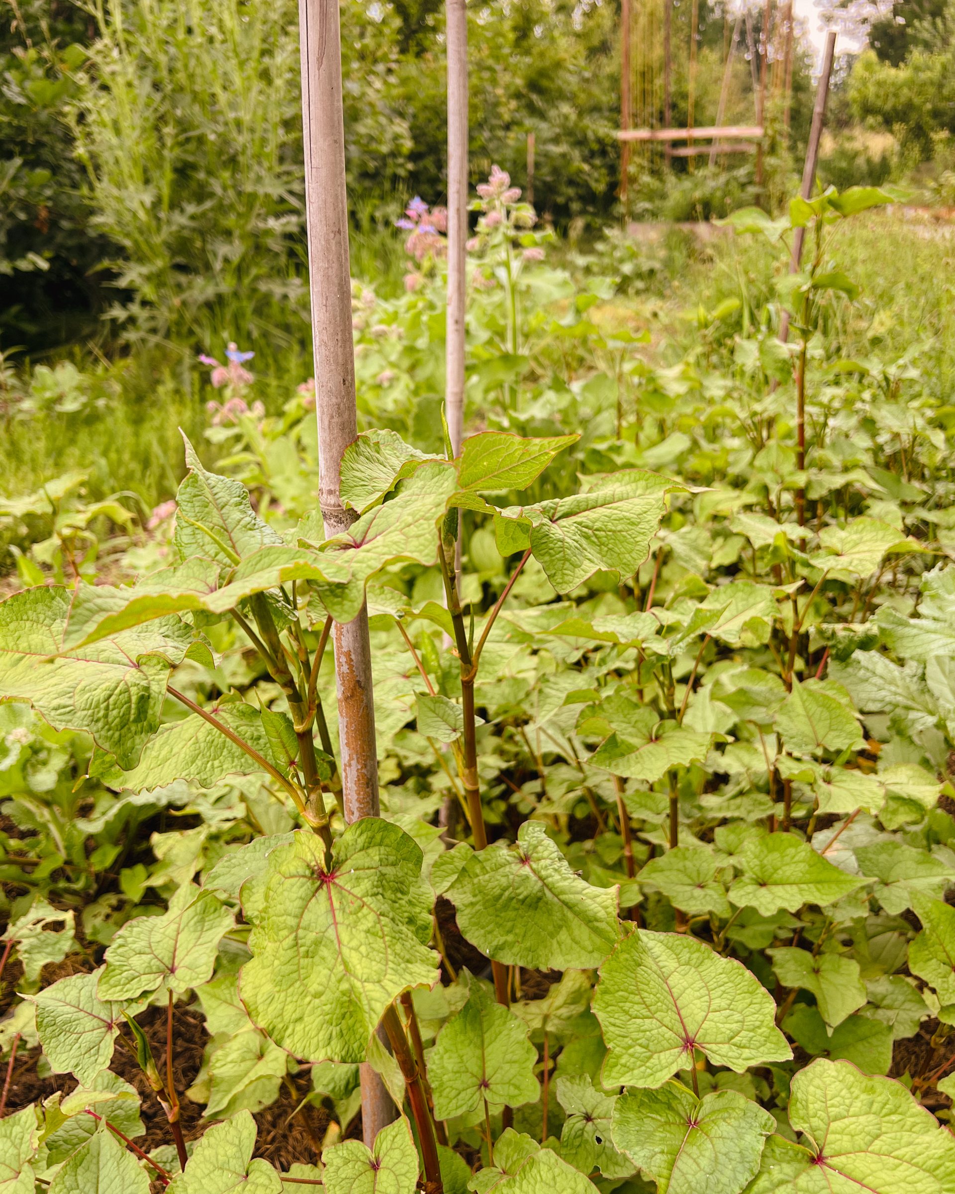 Der Ausdauernde Baumspinat, Wilde Buchweizen oder Ewige Spinat (Fagopyrum cymosum) ist winterhart bis -20 Grad und treibt aus seinem tiefwurzelnden Rhizom jährlich neu aus. Das Knöterichgewächs stammt ursprünglich aus dem Ostasiatischen Raum und ist ein naher Verwandter des besser bekannten Buchweizens. Seine essbaren Blätter und jungen Triebe dienen von Anfang April bis zum ersten Frost, als Spinatersatz und entfalten hier auf einer Neu-Interpretation klassischer „Senfeier“ ihr nussiges Aroma.