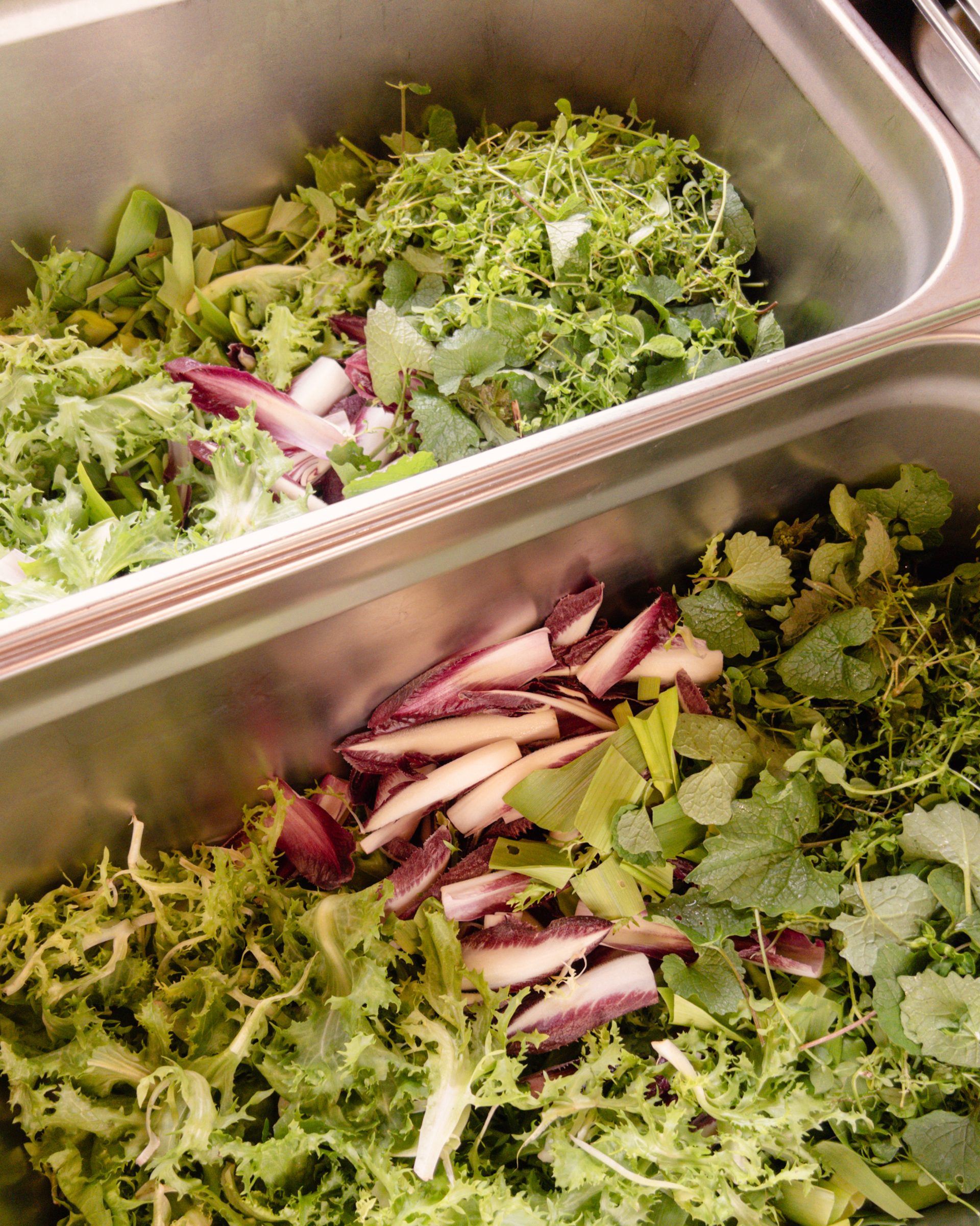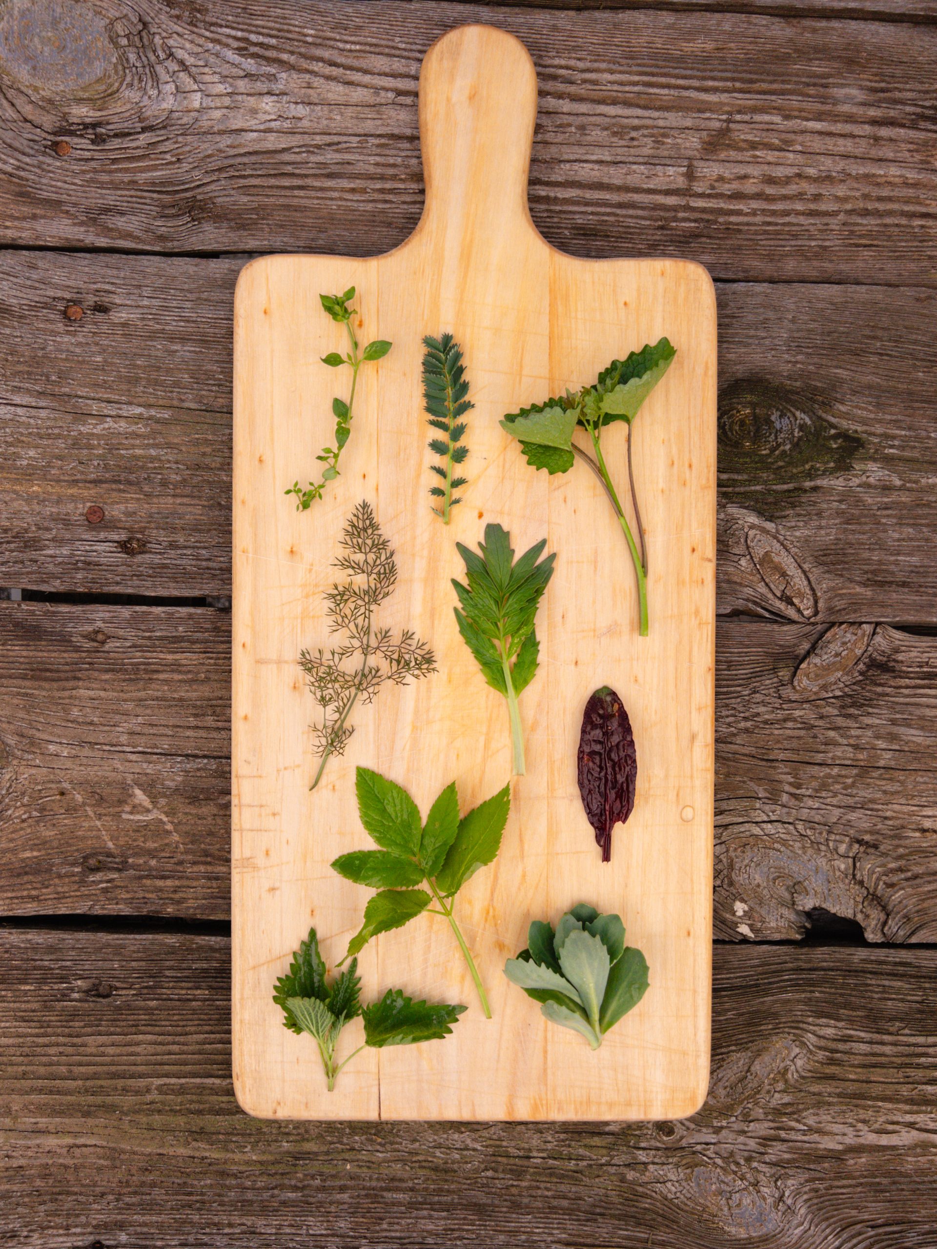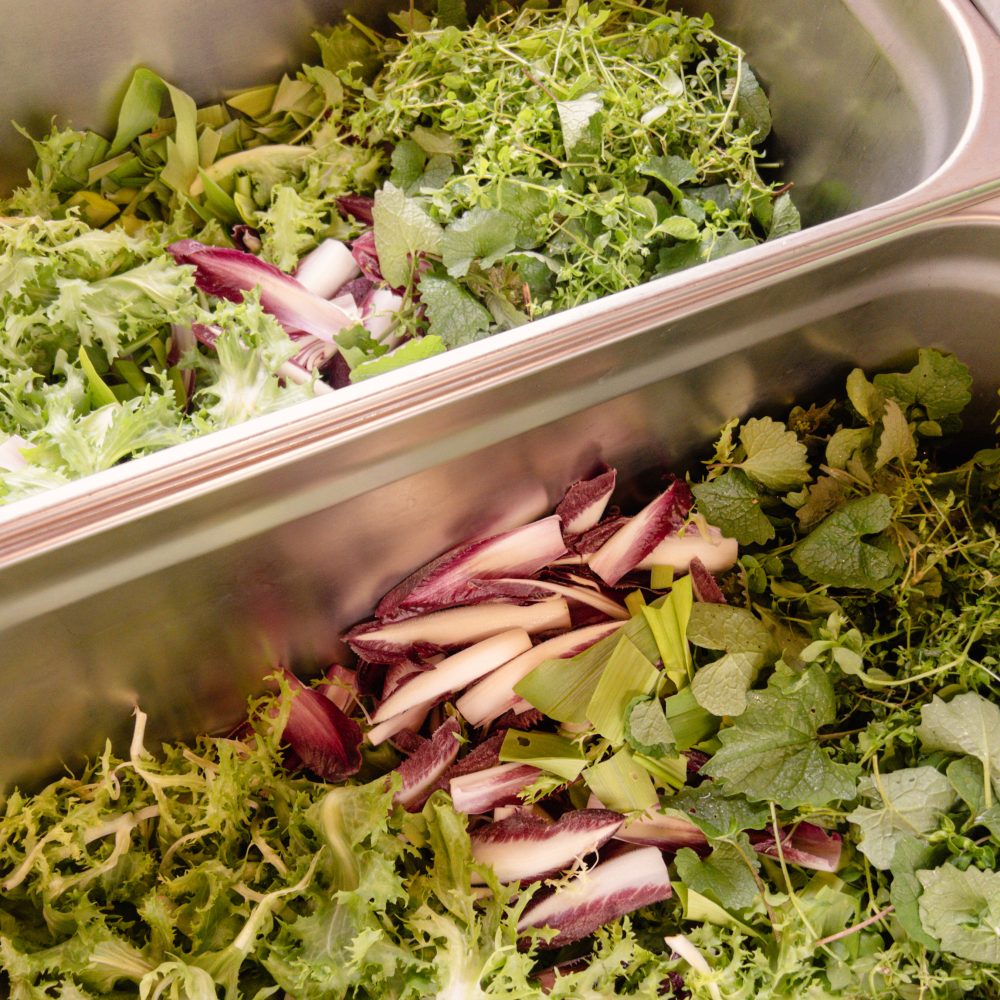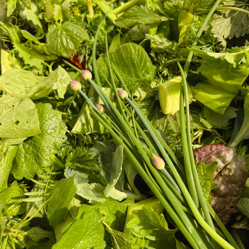 Eine kleine Auswahl an unseren handverlesenen Kräutern für unsere Wildkräutersalate. Je nach Jahreszeit variiert die Zusammensetzung.