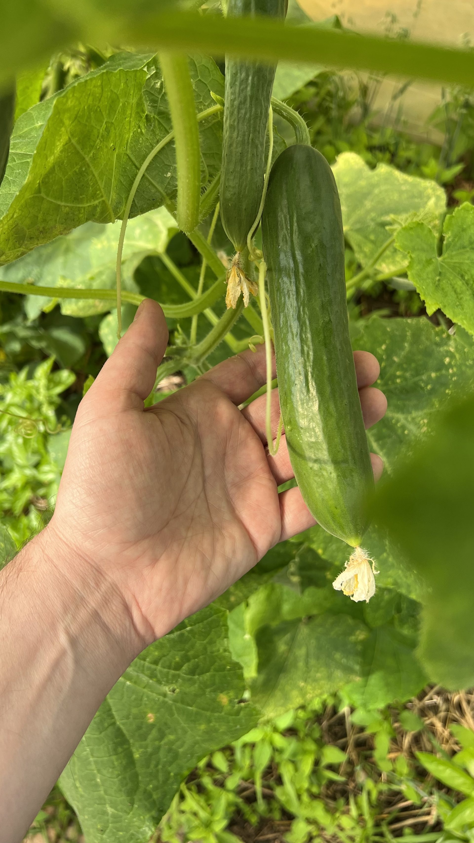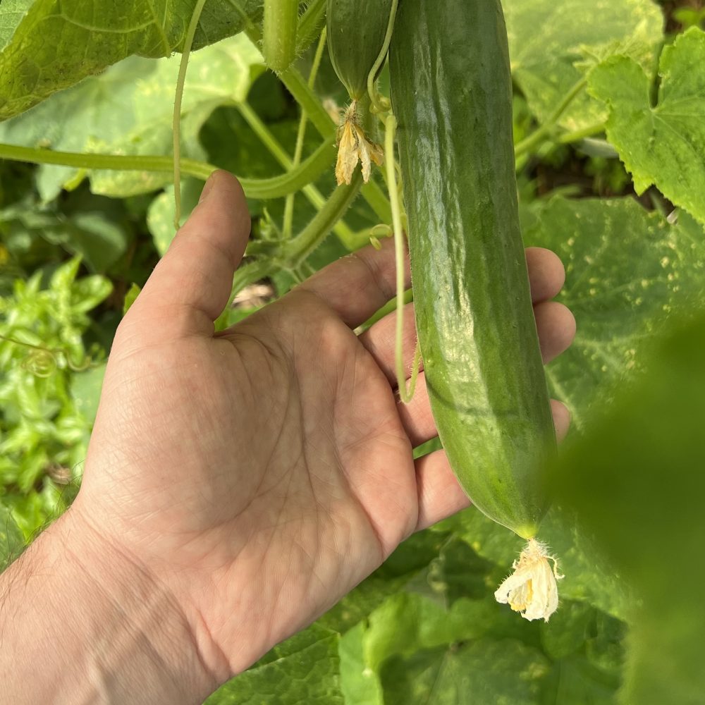 Gurken nutzen im Waldgarten die Kletterschicht (Strata 7) oder die Bodenschicht (Strata 5).
