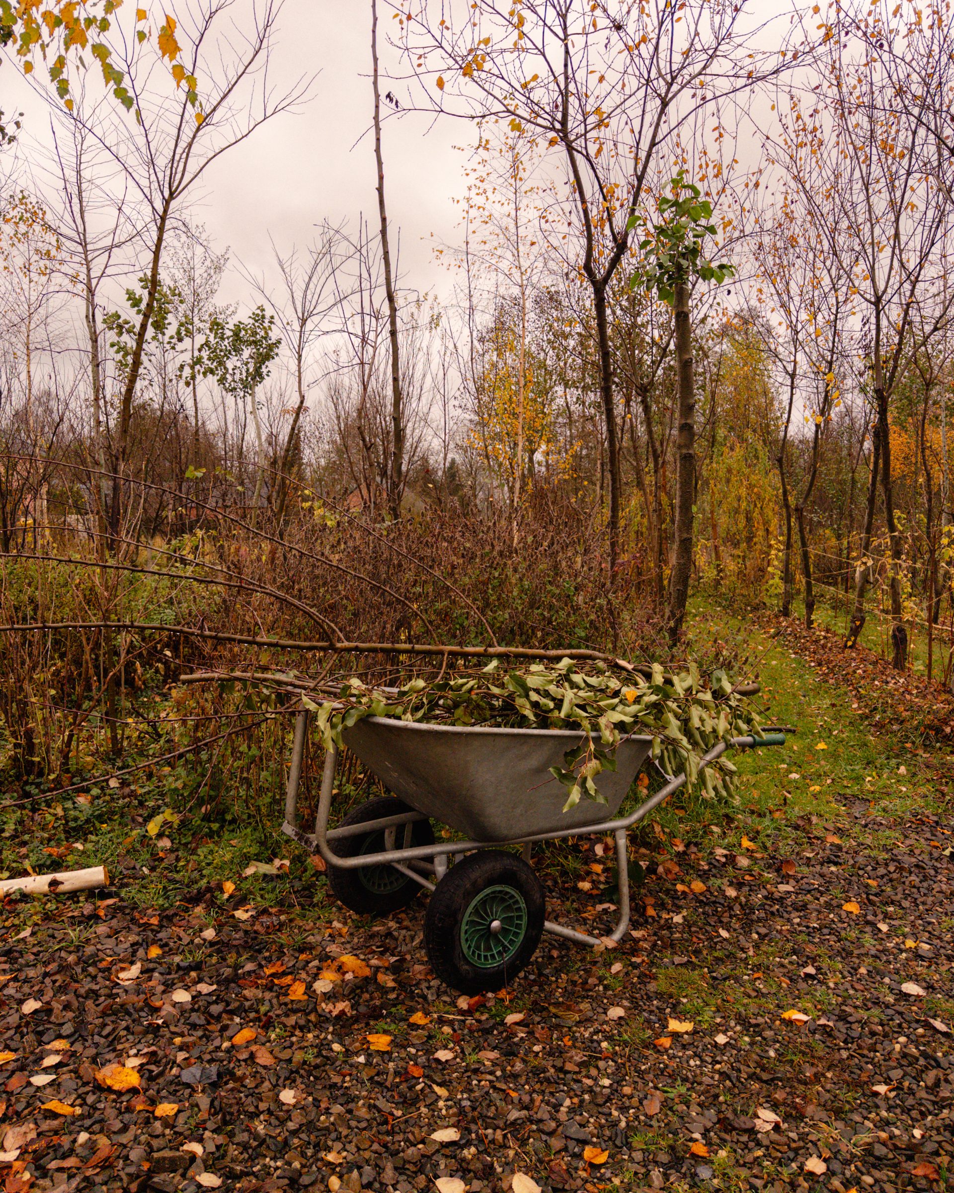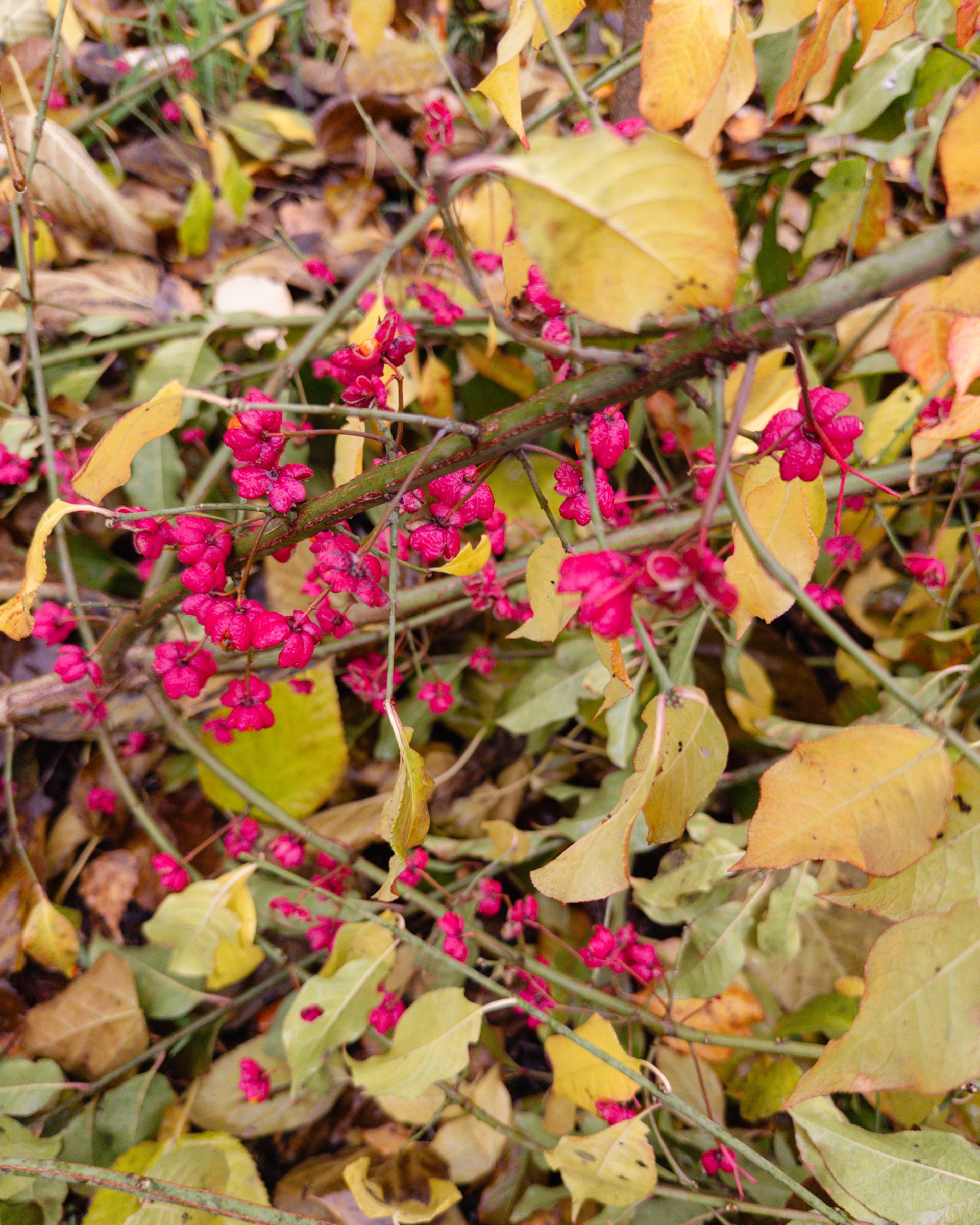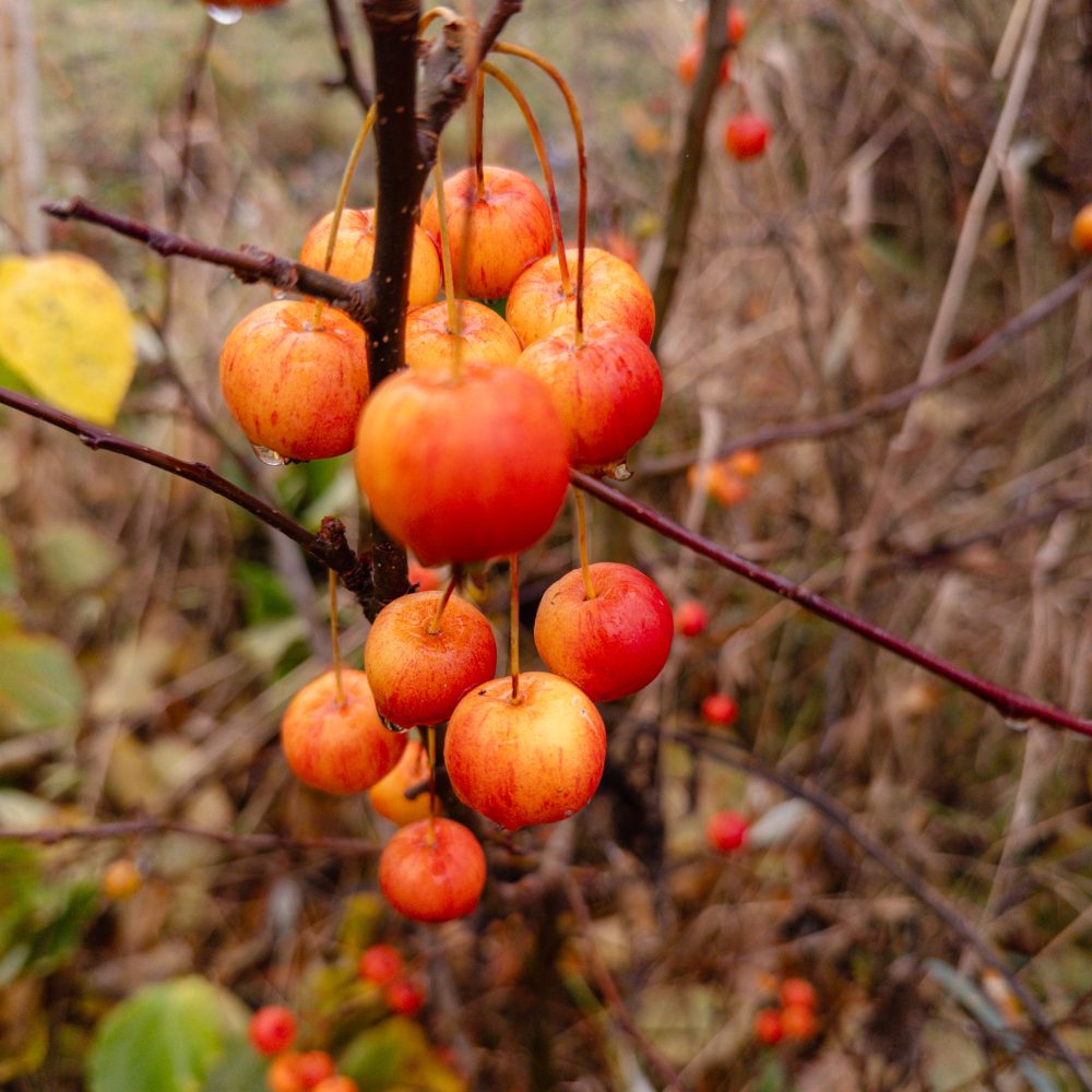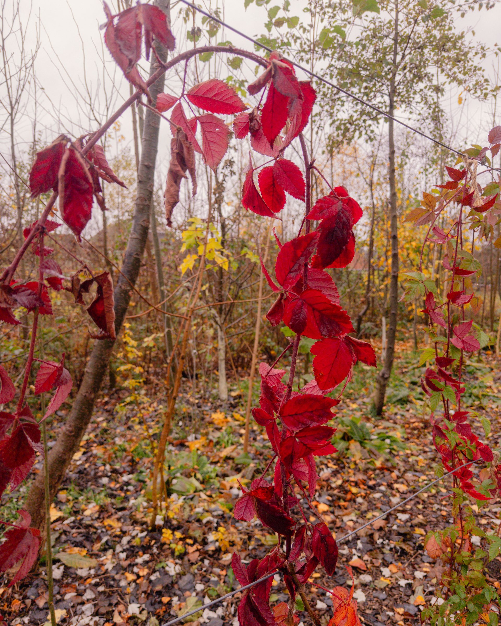 Die Pionierbäume werden aufgeastet und das Schnittgut und Laub bodendeckend verteilt, Nichts wird weggeräumt. Hier entsteht unser größter Schatz: Guter Boden. Pilze und Kleinstlebewesen leisten ihre wertvolle Arbeit im Verborgenen. Die Natur beschenkt uns noch mit ein paar Farben.