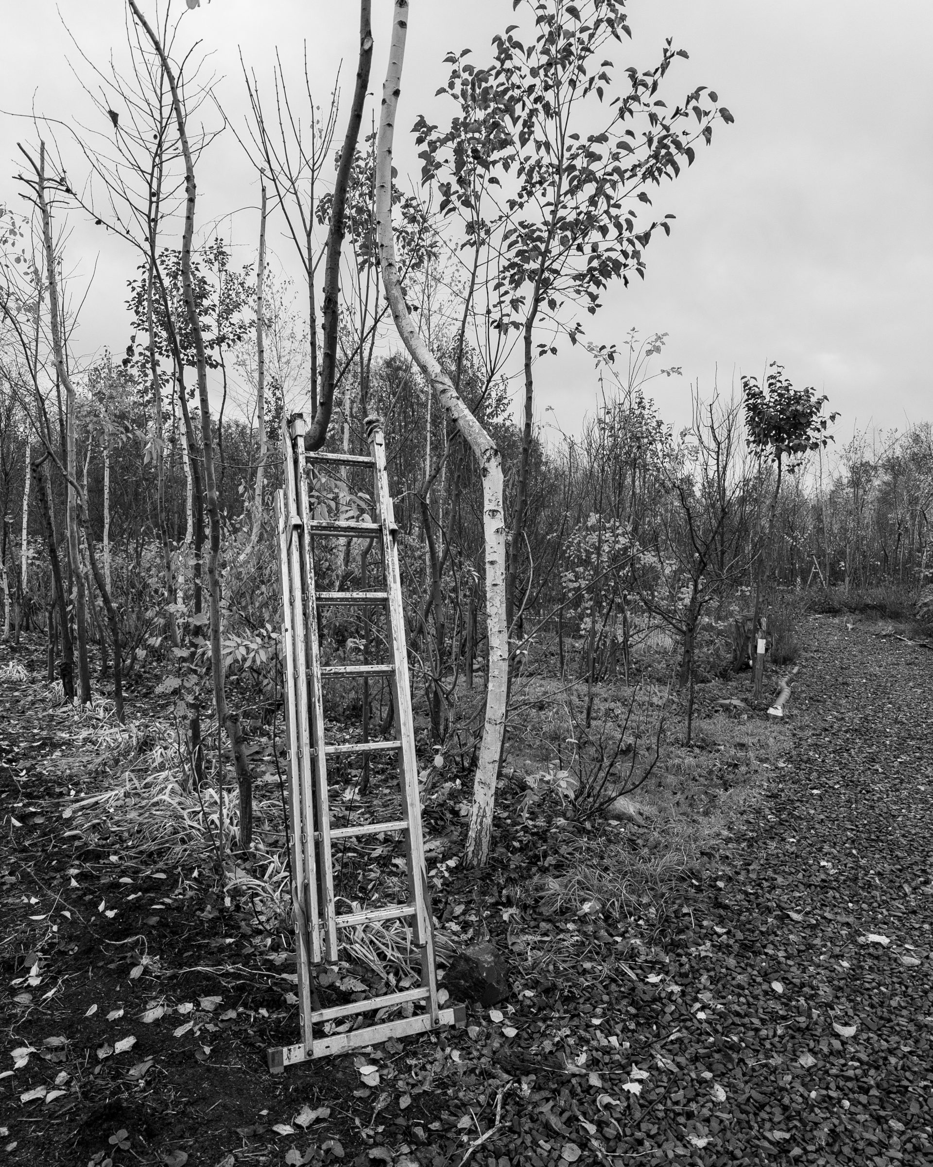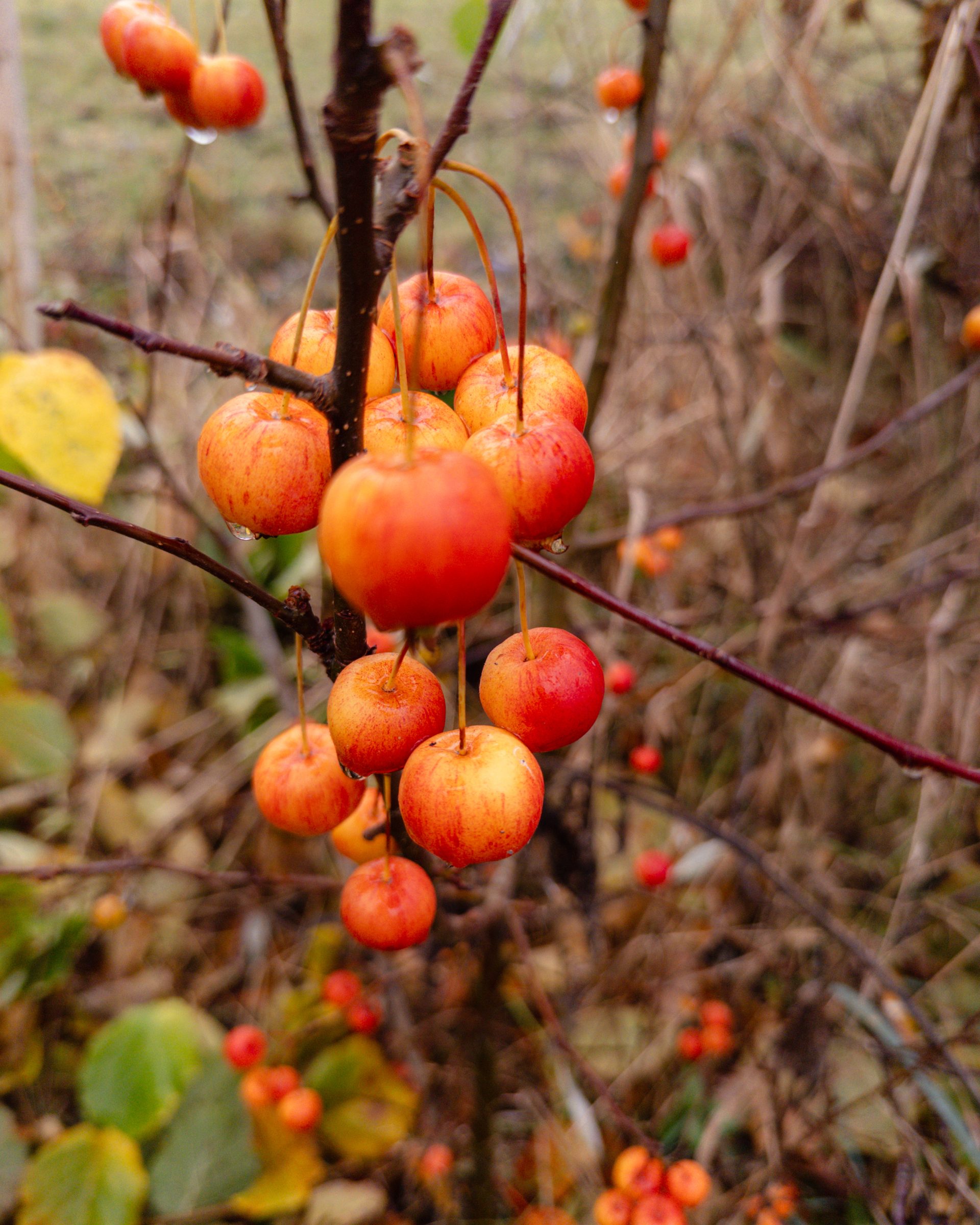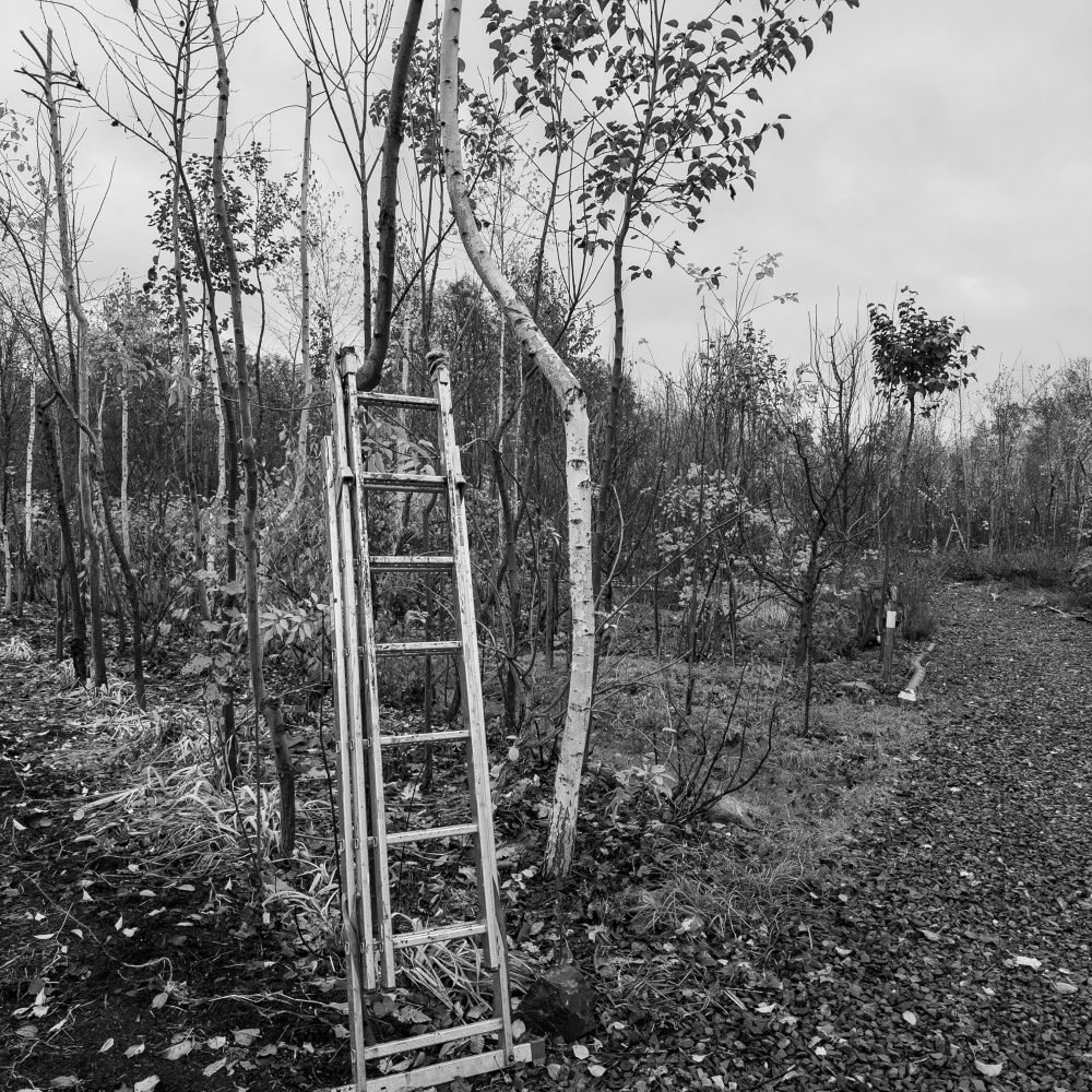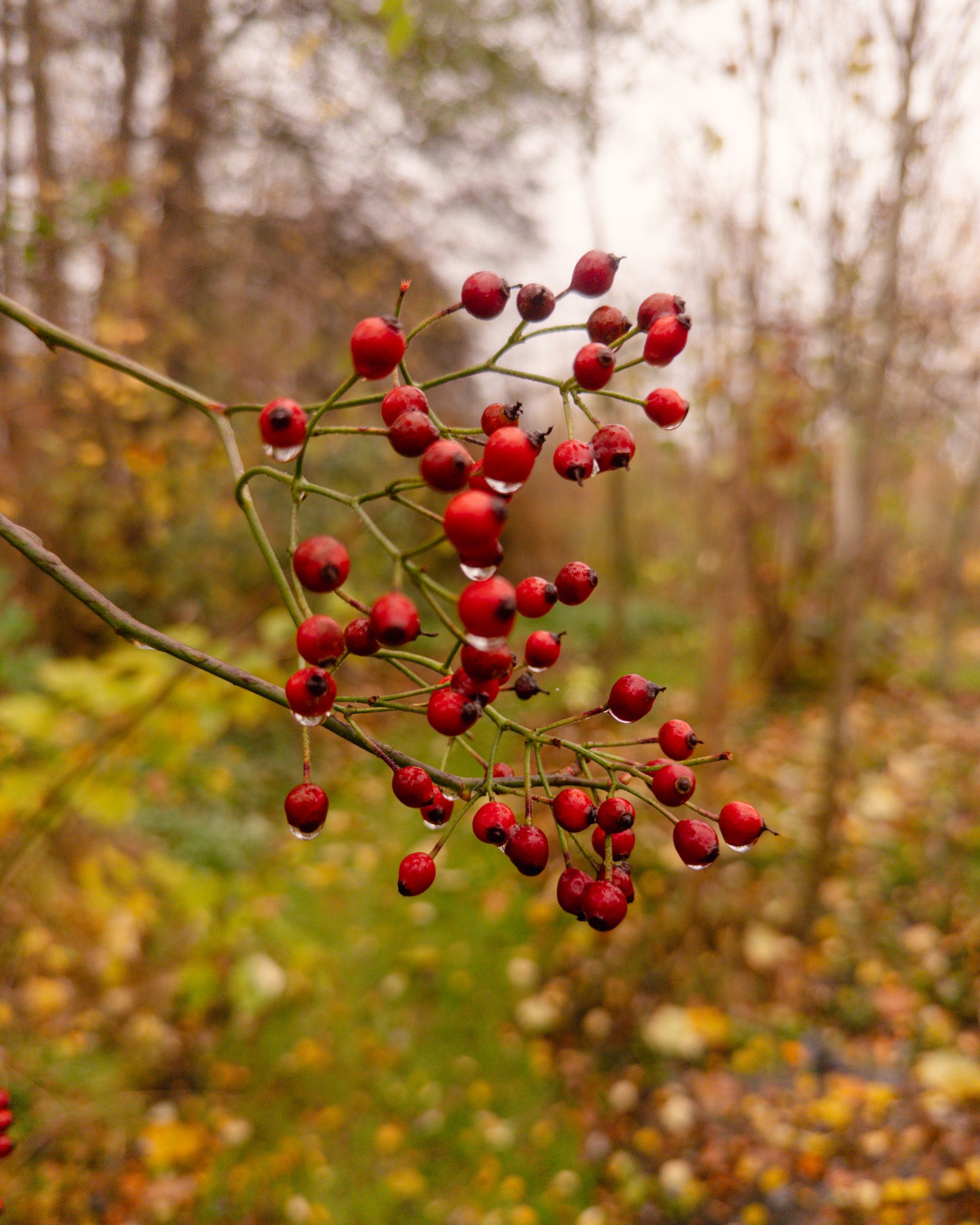 Die Pionierbäume werden aufgeastet und das Schnittgut und Laub bodendeckend verteilt, Nichts wird weggeräumt. Hier entsteht unser größter Schatz: Guter Boden. Pilze und Kleinstlebewesen leisten ihre wertvolle Arbeit im Verborgenen. Die Natur beschenkt uns noch mit ein paar Farben.